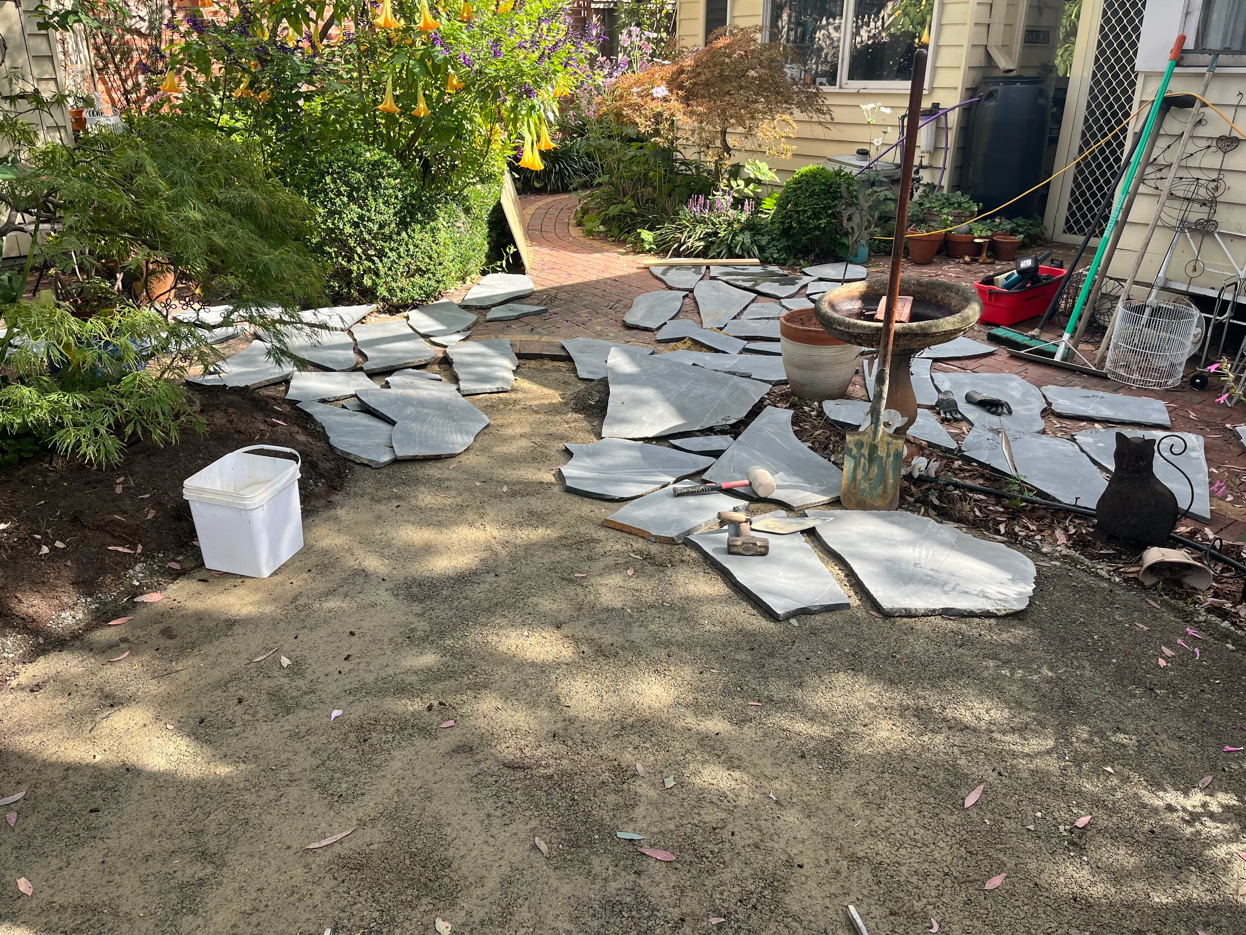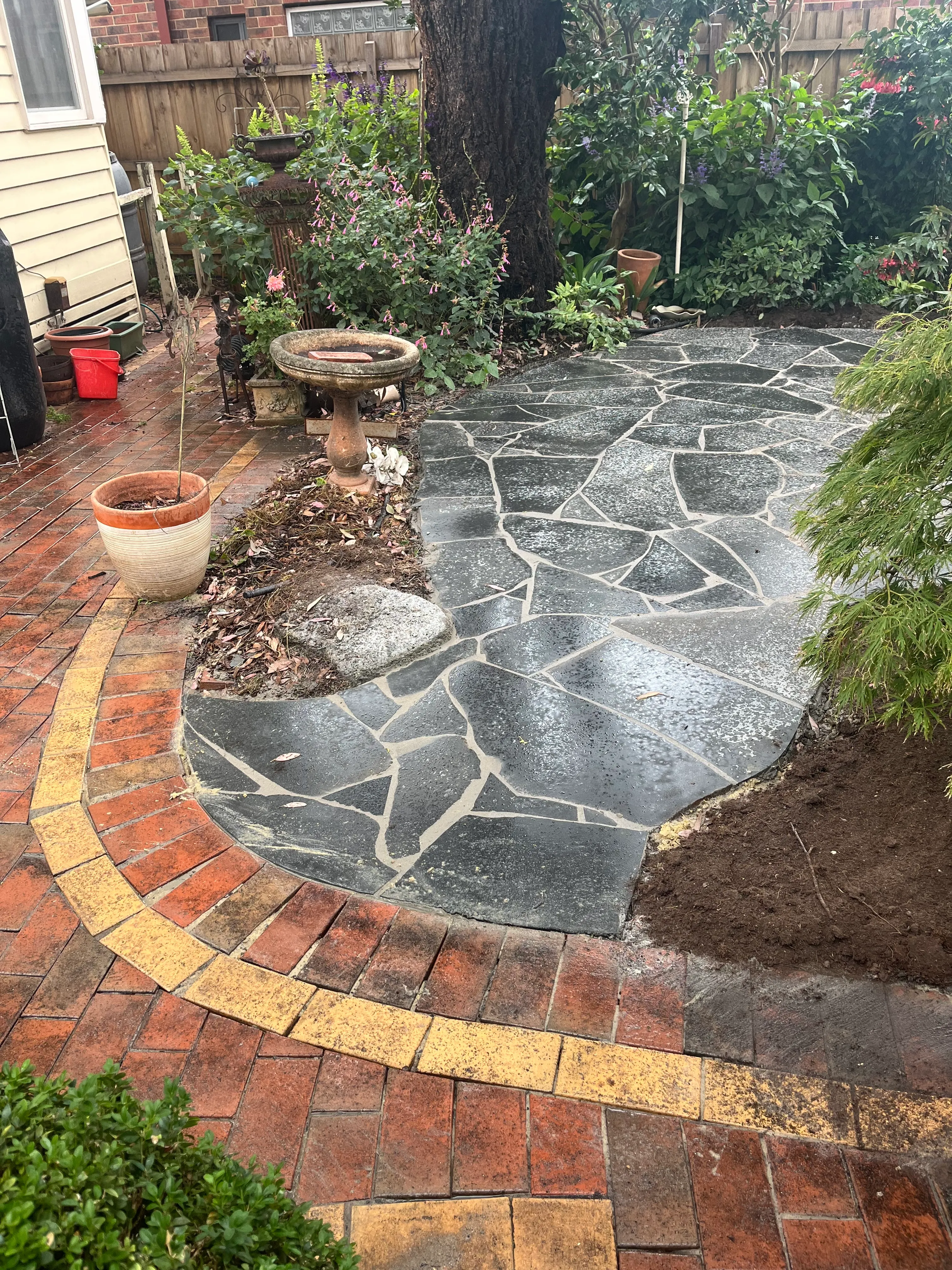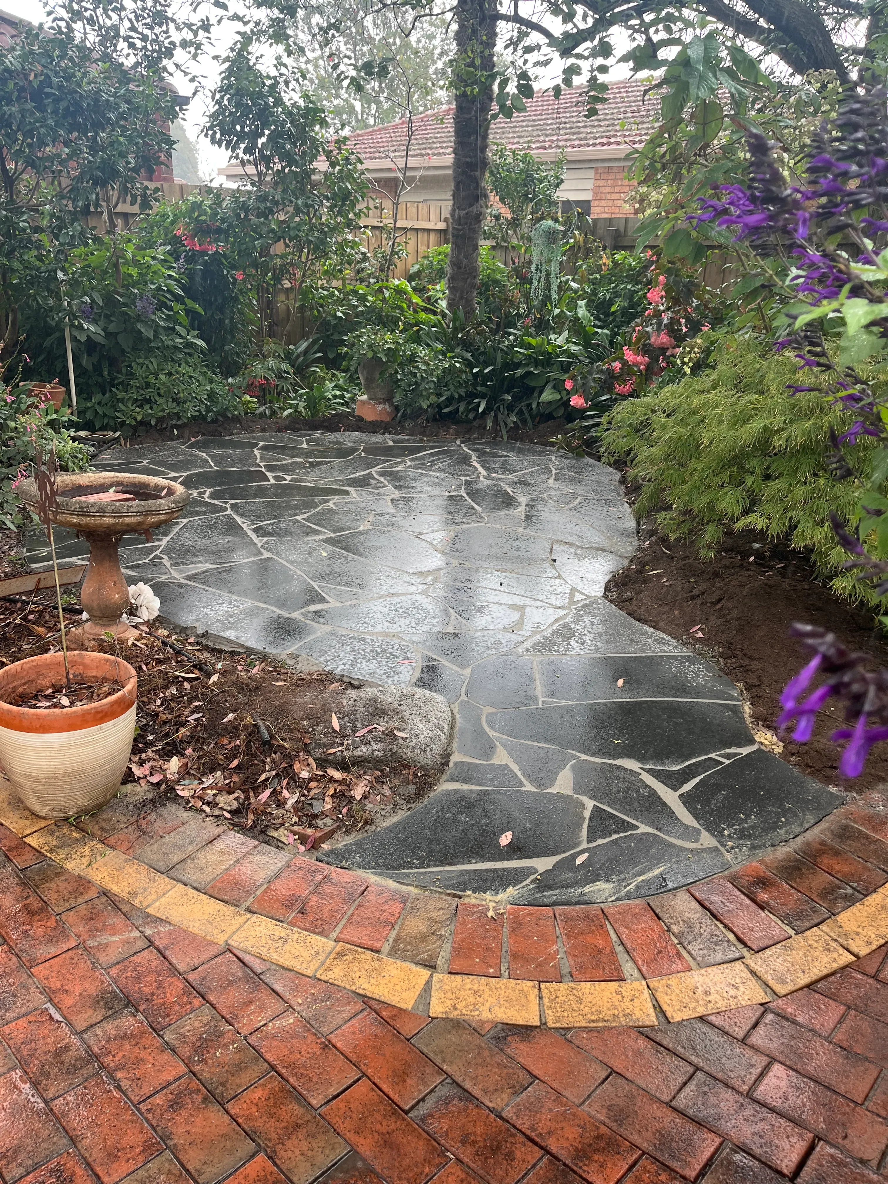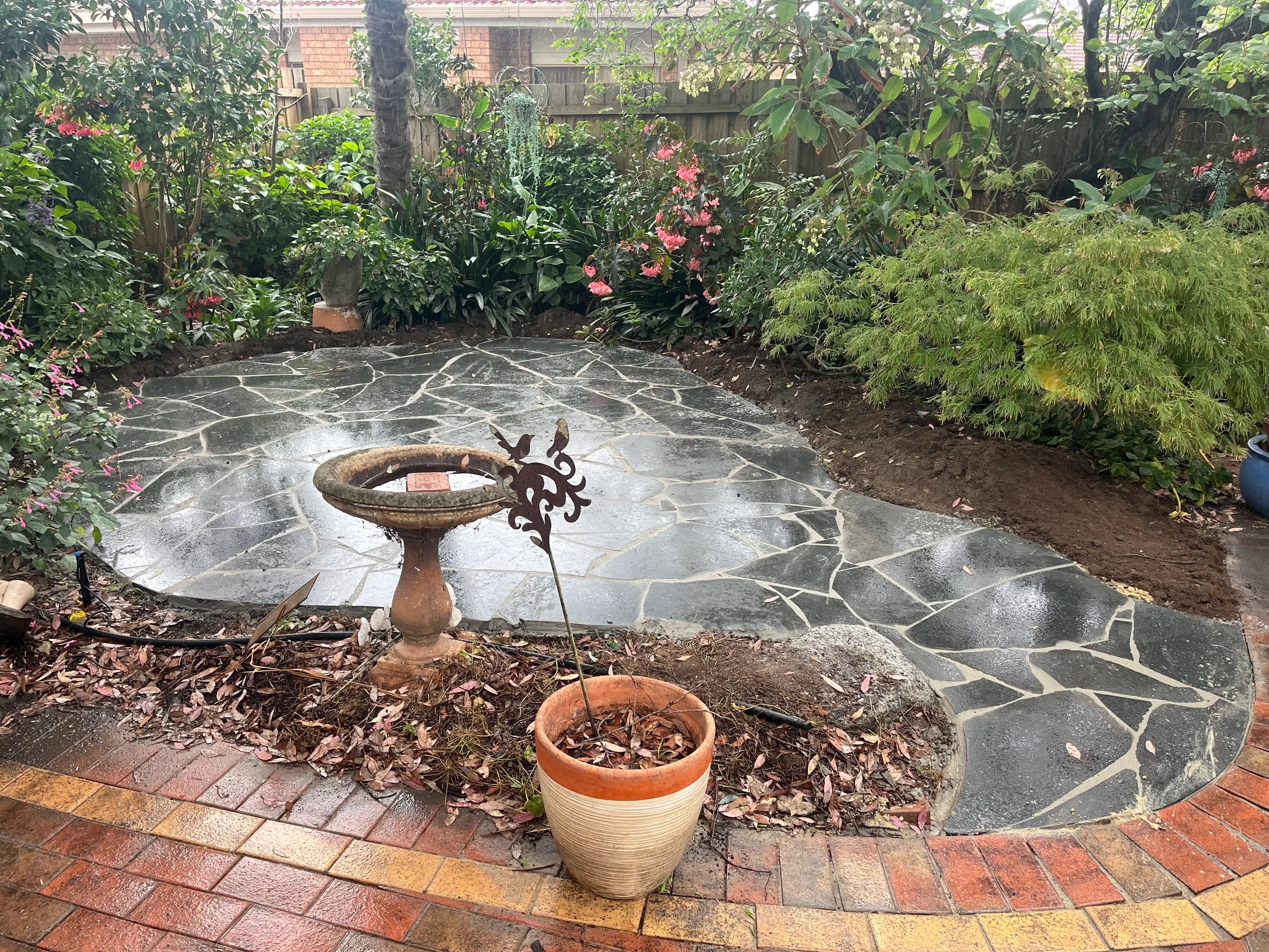 A Quiet Garden Corner Reimagined – Bluestone Seating Area in Melbourne 🌿🪨